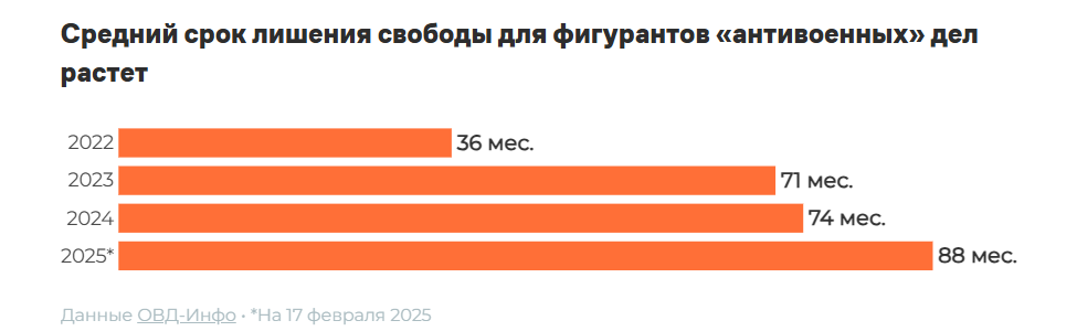Большинство людей преследовали по первой части статьи, которая предполагает, что человек должен иметь минимум два решения суда по административным делам о дискредитации в течение одного календарного года. Это объясняет, почему пик применения этой статьи пришелся на 2023 год: за это время с начала вторжения у большинства политических преследуемых как раз появились вторые решения суда.